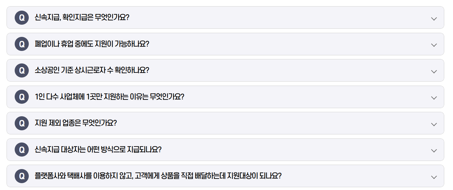 신속지급 대상이 아닌 소상공인 택배사, 퀵서비스, 심부름센터 등을 이용하거나 직접 배달하는 소상공인