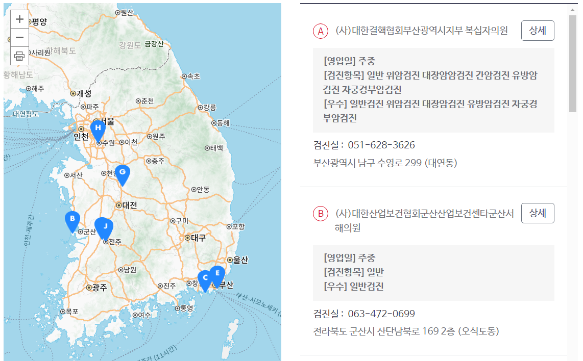 👉하단에는 거주지 주변 검진기관도 확인할 수 있습니다.