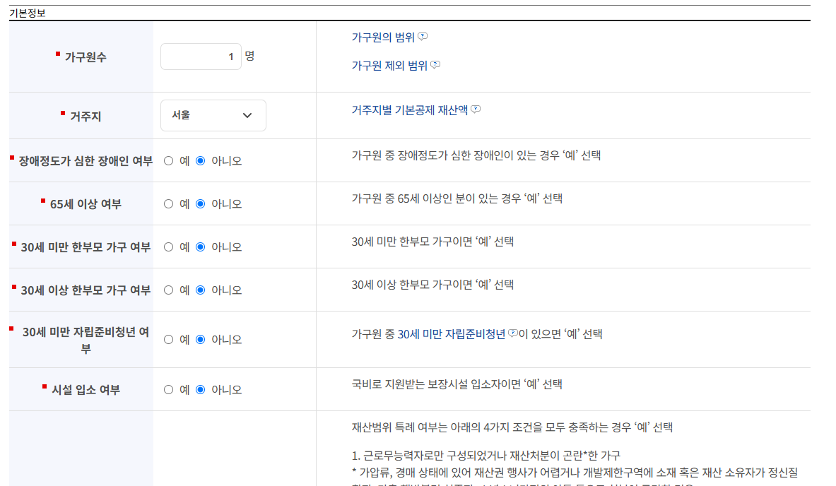 가구의 금융자산, 부동산, 차량 등을 포함한 총 재산도 자격심사에 포함됩니다. 일정 기준 이상의 재산을 보유하고 있을 경우 급여 수급에서 제외될 수 있으며, 지역별 재산기준이 다르게 적용되므로 본인의 실거주지를 기준으로 정확히 확인해야 합니다.