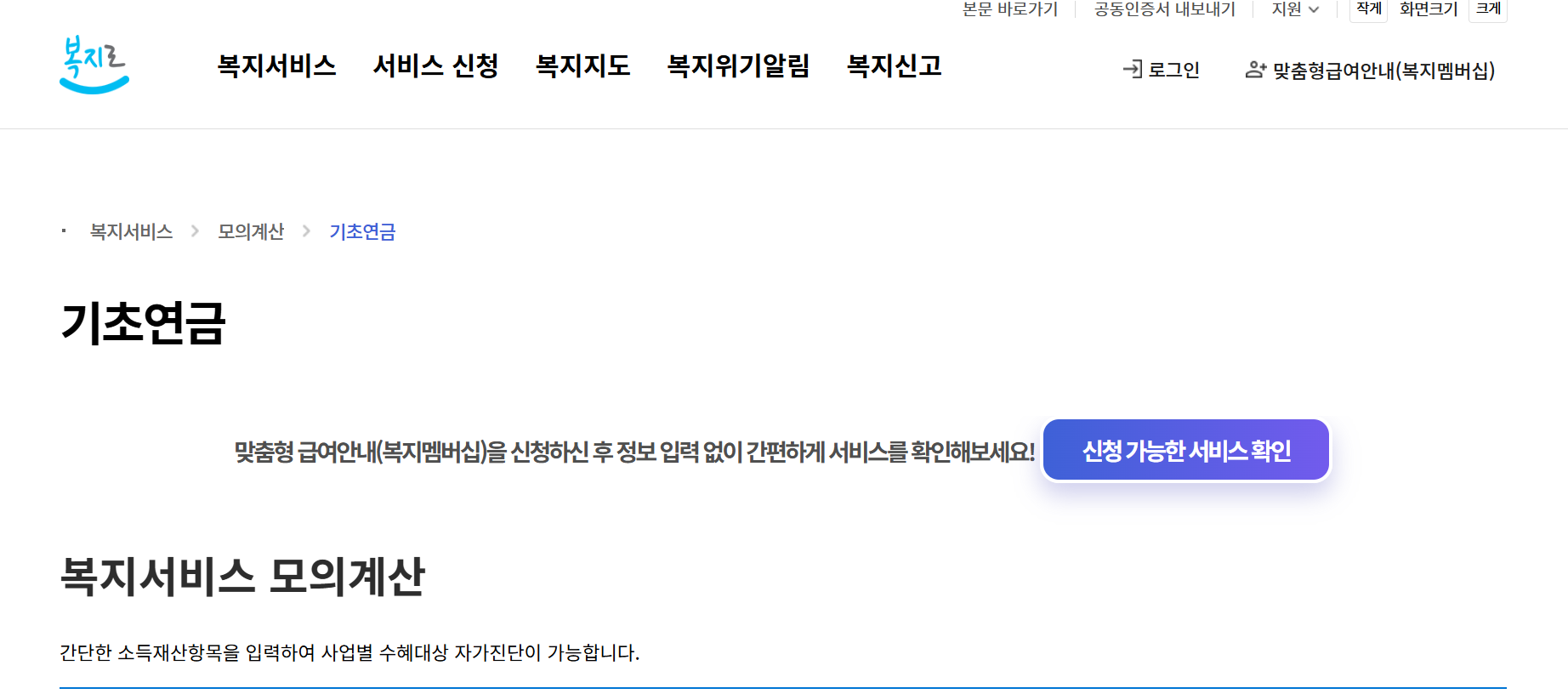복잡하게 느껴지는 기초연금의 수급 가능 여부와 지급액을 누구나 손쉽게 확인할 수 있도록 ‘기초연금 모의계산 사이트’가 마련되어 있습니다. 이 사이트는 보건복지부와 국민연금공단이 함께 운영하는 공식 홈페이지이며, 실제 기초연금 신청 전에 본인의 수급 가능성과 예상 수령액을 미리 확인할 수 있는 서비스입니다.