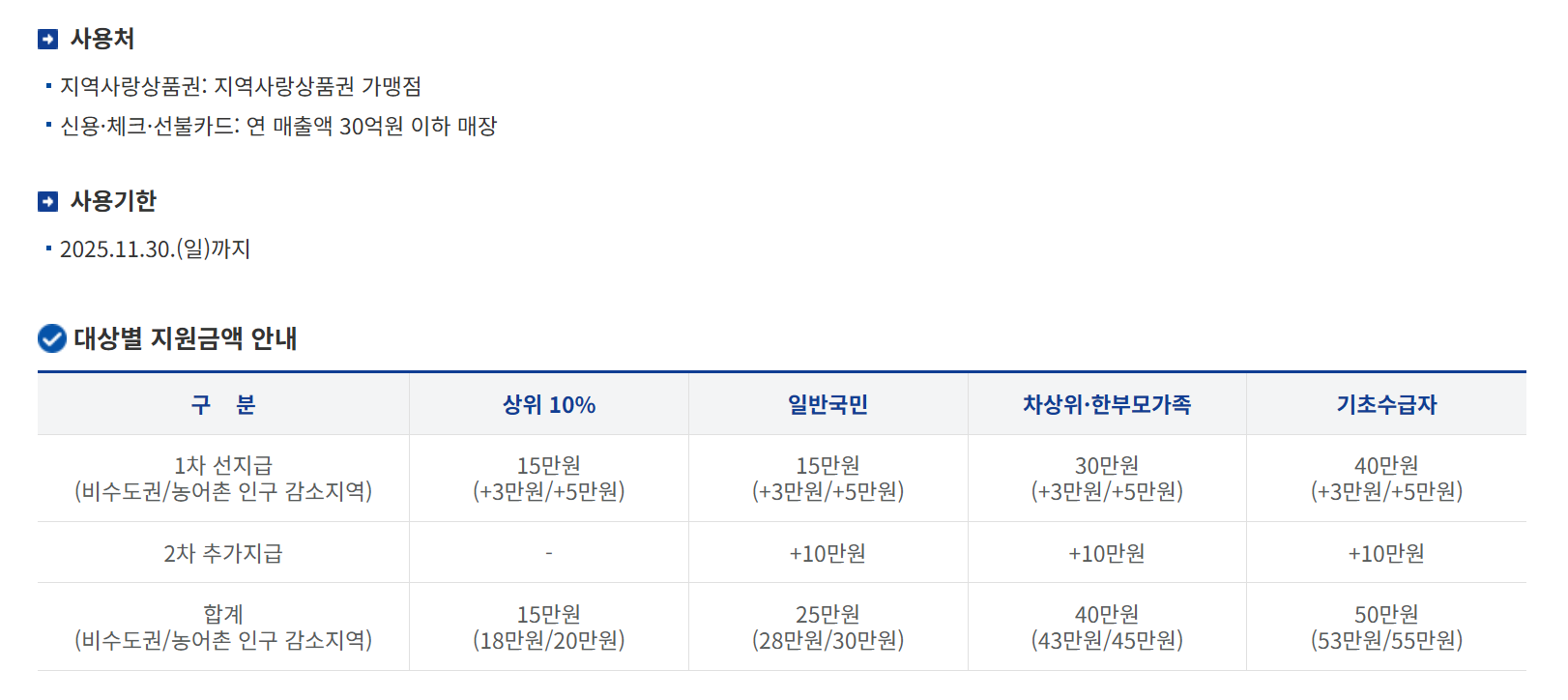 지원금 사용처와 유효기간