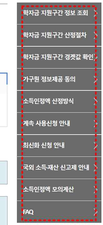 한국장학재단 홈페이지에서 [장학금] 메뉴 중 [한눈에 보는 학자금 지원구간] 을 눌러주세요.