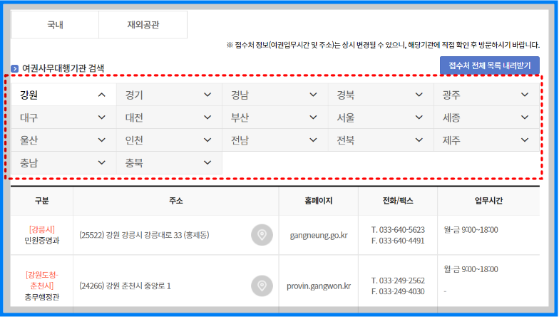 여권 방문 발급신청은 여권사무대행기관으로 가셔야 하는데요, 해당지역 구청이나 시청, 또는 도청이 대부분입니다만 미리 조회를 해 보시는 것을 추천합니다.