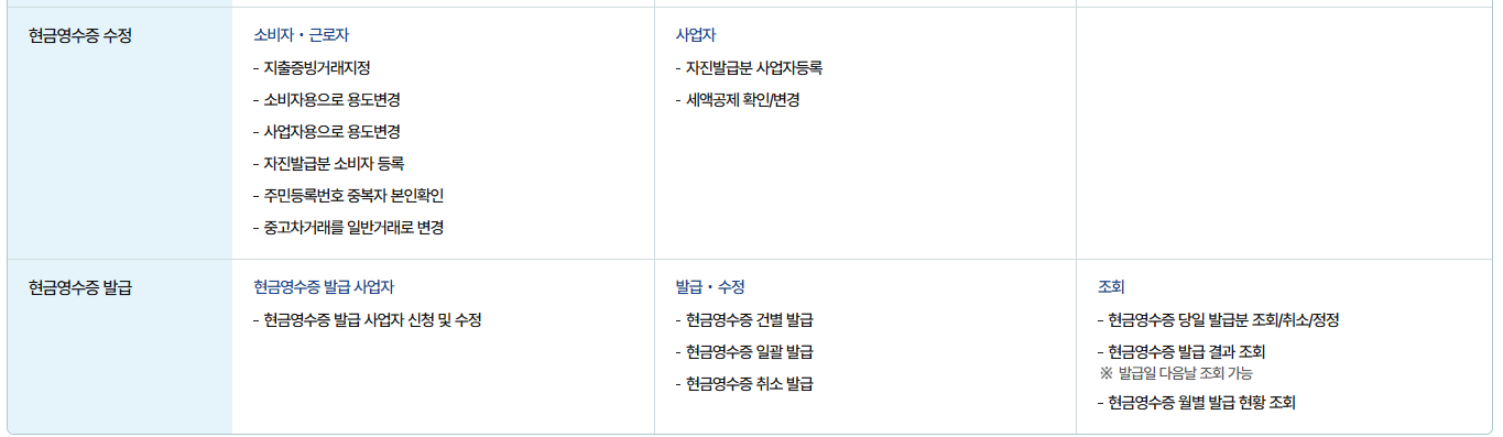 - 발급 방법: 국세청 홈택스 접속 → 사업자로 로그인 → [전자(세금)계산서·현금영수증] 메뉴 선택 → [현금영수증 발급]에서 입력 및 발급.