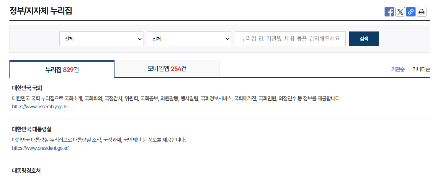 누리집 홈페이지 사이트는 여러 종류가 있습니다. 중앙홈페이지부터 지자체까지 다양합니다.